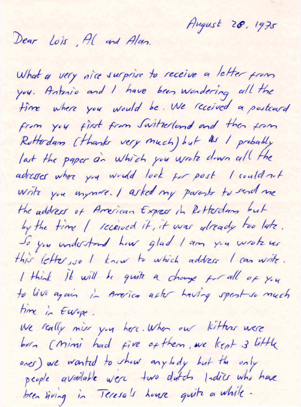 Anushka & Antonio’s Letter - 28 August 1975